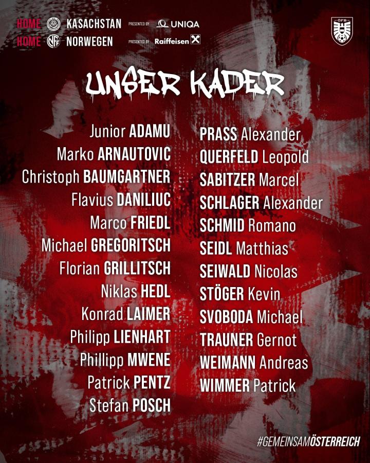 在门将位置上,奥地利队选择了维也纳快速的赫德尔、布隆德比的彭茨以及萨尔茨堡红牛的施拉格尔,为球队提供了稳固的门将防线。后卫线上有维罗纳的达尼柳克、不莱梅的马尔科-弗里德尔、弗赖堡的林哈特等实力选手,他们的出色表现将为球队的防守端注入更多信心。